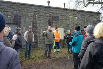 Jetzt wanderten wir bergab Richtung Schule, wo es kurze Informationen zum Löschwasser gab. Weiter führte uns der Weg zum Polder vor Herchenrode, der uns vor Hochwasser schützen soll. Auch hier erfuhren wir viel Interessantes.