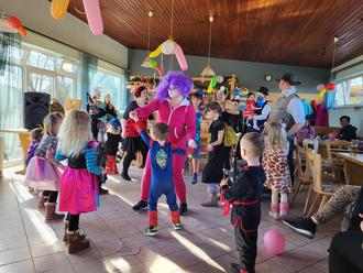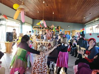 Am Montag, den 20. Februar, startete um 14.11 Uhr die diesjährige Kinderfastnacht im Sportheim des TV Asbach. Das bunt geschmückte Sportheim füllte sich sehr schnell mit vielen großen und kleinen Fastnachtsfans, die in ihren vielfältigen Kostümen gut zu den Luftschlangen und Luftballons passten. Neben jahreszeittypischen Leckereien wie Kreppeln und Donuts gab es später am Nachmittag auch Würstchen mit Brötchen gegen den Hunger. Doch nicht nur für das leibliche Wohl war bestens gesorgt – vor allem das Unterhaltungsprogramm lies keine Wünsche offen. Mit einem eigens dafür angefertigten Glücksrad konnten die Kinder selbst „erdrehen“, welches Spiel bzw. welcher Tanz als nächstes kam. Zwischen Stopptanz, Luftballontanz und Zeitungstanz kam das Schokoküsse-Wettessen als kleine Stärkung gerade recht und war ebenso wie die Bonbonrakete ein Favorit bei den Kleinen. Die Polonaise machte sich mehrmals auf die Reise und erheiterte genauso wie die Reise nach Jerusalem nicht nur die Kinder, sondern auch das Publikum. Zwischendurch wurde der Basteltisch sehr gut besucht, an dem bunte Faschingsmasken gebastelt werden konnten. Es herrschte eine ausgelassene Stimmung und wem es zwischendurch zu laut und trubelig wurde, der konnte bei milden Temperaturen vor dem Sportheim frische Luft schnappen.