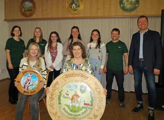 Die Königinnen der SG Hausen-Seglohe Lara Feile, Alexandra Holzmeier Stehend von links: Tina Hofmann, Leni Borst, Theresa Stimpfle, Ramona Bühler, Anna-Lena Bühler, Max Appoldt, Bürgermeister Frank Merkt