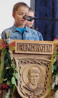 Die vierte Klasse war bei der Eröffnungsfeier der Rieser Kulturtage dabei, sie fand in der Fremdinger Turnhalle statt. Dabei erklärten sie den gespannten Zuhörern erst einmal was Kultur überhaupt ist und ausmacht. Anschließend stellten sie gekonnt das Gedicht Mein rotes Fahrrad - auf hochdeutsch - vor. Da es aber auch um Rieser Kultur ging, folgte dann das Gedicht: "no amal gscheiht!" im schönen Fremdinger Dialekt. So hörte das Publikum noch Mei roads Radl, was mit einem kräftigen Applaus belohnt wurde.