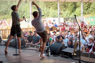 Bereits am Donnerstag reisten viele eingefleischte BLASIUS-Fans mit ihren Zelten und Wohnwägen an und feierten auf dem Zeltplatz schon einen Tag vor dem offiziellen Start. Am Freitag öffnete dann auch das eigentliche Festivalgelände mit einem kleinen Ausstellerbereich, dem beliebten Biergarten und der Hauptbühne, die noch größer war als bei den zurückliegenden Festivalausgaben. Neu war auch die gemütliche Weinlounge und das 12 Meter hohe Zeltdach, das die Besucher vor zu viel Sonne schützte. Bunt beleuchtet bot sich in der Abenddämmerung ein stimmungsvoller Anblick.