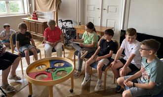 Am 3. Juli radelte die 4. Klasse zusammen mit Frau Deißler und ihrem Mann Konrad nach Hochaltingen, um dort einen Spielevormittag mit den Bewohnern des Altenheims zu erleben. Schon die Verköstigung zu Beginn war ein Erlebnis für alle. Oben im ersten Stock traf dann Jung und Alt zusammen. Eine wunderbare Zeit war das! Gleich am kommenden Tag wurden eifrig Briefe geschrieben und von Mina im Altenheim persönlich abgegeben.