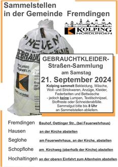 Von Kolping werden keine Säcke zur Verfügung gestellt, bitte geben Sie die Altkleider in selbst besorgte Plastiksäcke.