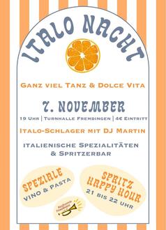 Um dem traditionellen Weinfest einen etwas frischeren Anstrich zu verleihen, hat sich der Musikverein dazu entschlossen, in diesem Jahr erstmals eine "Italo-Nacht" am Freitag, den 07. November 2025 zu veranstalten.