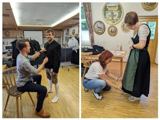 Ein Team von Trachten Schaber bei der individuellen Anpassung der Tracht.