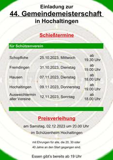 Herzliche Einladung zur 44. Gemeindemeisterschaft der Schützenvereine.