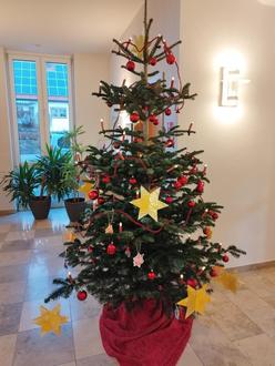 Am 14.12. machten sich die Vorschulkinder auf den Weg ins Rathaus, um den Weihnachtsbaum der Gemeinde zu schmücken. Dieser hing bereits voller Kugeln - doch das gewisse Etwas fehlte noch. Dafür waren nun die Vorschulkinder zuständig. Jedes Kind war voller Eifer dabei, die verschiedenen Sternanhänger an den Baum zu hängen. Am Ende glänzte der Baum mit Kugeln, Ketten, Lichtern und den gebastelten Sternen.