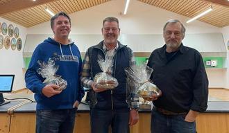 Hubert Reeb (Platz 5) mit einem 28,2 Teiler für die Praxis Walgenbach überreichen.