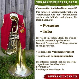 Für unsere Jungmusikanten suchen wir Verstärkung im tiefen Blech.