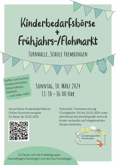 Am 10. März 2024 findet in der Turnhalle und dem Gang der Kita ein Frühjahrsmarkt statt. An diesem Tag ist einiges im Gebäude geboten: