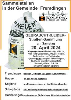 Von Kolping werden keine Säcke zur Verfügung gestellt, bitte geben Sie die Altkleider in selbst besorgte Plastiksäcke.