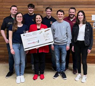 Die Jugendkapellen der Musikvereine aus Deiningen, Fremdingen und Maihingen hielten ein Jugendgemeinschaftskonzert in der Wallersteiner Mehrzweckhalle ab. Bei diesem gut besuchten Konzert mit freiem Eintritt wurden am Ende Spenden für den guten Zweck sowie einen Gemeinschafsabend der drei Kapellen gesammelt. Während des damit finanzierten Gemeinschaftsabends fand die Spendenübergabe statt. Dem Verein Glühwürmchen aus Tapfheim konnten durch die Spendengelder insgesamt 1500 Euro an die erste Vorsitzende Rosmarie Schweyer übergeben werden. Dirigent Daniel Stimpfle (MVF), Dirigentin Katja Röttinger (MKD), Johannes Hahn (MKD), Vorsitzende des Glühwürmchen Rosmarie Schweyer, Vorsitzender Florian Kotz (MVM), Dirigent Jakob Herrle (MVM), Vorsitzender Benjamin Seefried (MVF) und Annika Lausenmeyer (MVF) (Bild von links) zeigten sich erfreut über die hohe Summe, die durch die Spenden beim Jugendgemeinschaftskonzert zusammengekommen ist.