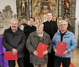 Mit segensreichen Wünschen für die Zukunft dankte Herr Dekan BGR Jürgen Eichler für ihren langjährigen Einsatz und überreichte Urkunden und ein Geschenk; Herr Götz wurde vom Bistum Augsburg außerdem mit dem Ulrichskreuz in Gold geehrt.