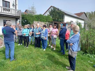 Mehr als 20 Interessierte folgten der Einladung des Gartenbauvereins zum Vortrag "1 X 1 des Gartenjahrs" von Christine Prischenk am Schaffhäuser Hof. Mehrere Teilnehmer waren bei schönem Frühlingswetter mit den Fahrrädern zum Schaffhäuser Hof gekommen. Nach dem Vortrag, bei dem es Wissenswertes über das Gartenjahr zu erfahren gab, ging es zu einem kurzen Rundgang durch den großen Garten mit Obstbäumen, Gemüse- und Staudenbeeten. Dabei fand ein reger Erfahrungsaustausch aller Anwesenden statt, bevor in gemütlicher Runde Kaffee und Kuchen angeboten wurde. Zum Abschluss führte Frau Prischenk noch einige interessierte Teilnehmer durch den übrigen Teil ihres Hofes mit Getreidelager, Ställen und Weiden für Pferde, Schafe, Hühner und 2 Schweine.