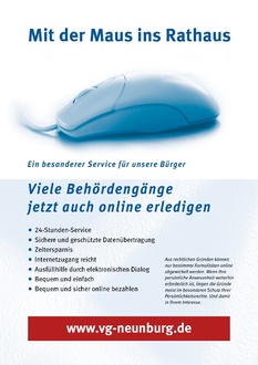 Die Verwaltungsgemeinschaft Neunburg vorm Wald bietet eine Vielzahl an Dienstleistungen an, die Sie elektronisch bequem von zu Hause aus erledigen können - und das sogar 24 Stunden am Tag, 7 Tage die Woche.
