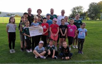 Der Spendenscheck ist der Papier gewordende Beweis für den Zusammenhalt in der Gemeinde und zwischen den Vereinen untereinander. 500 Euro spendet der Gartenbauverein Dieterskirchen zu gleichen Teilen der Schule und dem TSV Dieterskirchen. Geld, das aus dem Erlös der Weinlaube beim Bürgerfest stammt. „Eure Mamis und Papis haben bei uns ein paar gesellige Stunden genossen und jetzt dürft ihr euch davon was Schönes kaufen“, richtete zweite Vorsitzende Jasmin Gassner die Worte an die Kinderschar, die sich am Montag zum Training auf dem Sportplatz versammelt hatten. Ein vielstimmiges Hurra war die Antwort darauf. Vorsitzender Robert Becher freute sich über die Freigebigkeit und versprach, „das Geld speziell für die Sportkids“ zu investieren. „Neue Geräte, um euch zu quälen“, meinte er augenzwinkernd und bedankte sich bei den Gartlern. Für die Gemeinde war stellvertretender Bürgermeister Richard Brunner vor Ort, der sich über die Solidarität unter den Vereinen besonders freute. „Beim Bürgerfest gab es eben jene, die bessere Einnahmequellen hatte, und andere.“ Der TSV Dieterskirchen hatte mit zahlreichen Helfern den Kuno-Spendenlauf auf die Beine gestellt, aber davon selbst eben nicht profitiert.