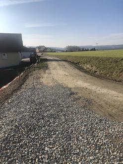 Auf Wunsch der Anlieger wurde eine Ausschreibung für die Ertüchtigung des öffentlichen Weges entlang den Grundstücken Prackendorf 47 – 53 durchgeführt. Die Firma Fischer aus Voitsried hat den Zuschlag als günstigster Anbieter erhalten. Ausgeschrieben war, die gesamte Fläche zu fräsen und neu zu verdichten, sowie den vorhandenen Entwässerungsgraben zu säubern. Ursprünglich sollten die Arbeiten Ende 2022 durchgeführt werden, dies wurde dann aber auf Rücksicht eines Neubaus auf das Jahr 2023 verschoben und im Oktober 2023 ausgeführt. Zuerst wurde der bestehende Entwässerungsgraben gesäubert und im Anschluss der Schotterweg ca. 15 cm tief aufgefräst und wieder verdichtet. Zum Schluss wurde der Weg noch mit einer Schutzschicht der Körnung 0/11 überzogen. Die Maßnahme kostet ca. 2.900 € brutto.