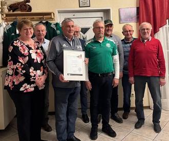 Zum neuen Ehrenmitglied wurde Josef Heigl ernannt. Hier auf dem Bild mit 1. Vorsitzender Robert Becher, alle Ehrenmitgliedern und 1. Bürgermeisterin Anita Forster.