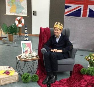 Die Kinder überraschten Herrn Drachsler mit Liedern, die sie einstudiert hatten. Außerdem musste er verschiedene Quizfragen zum Thema Großbritannien lösen.