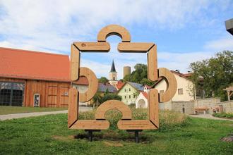 Das Puzzleteil der neuen Mitmachaktion auf dem Dorfplatz in Thanstein (Foto: Veronika Kiener, Regionalmanagement des Landkreises Schwandorf)