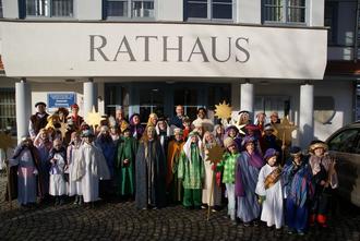 Am 6. Januar nach dem Gottesdienst, in dem die Sternsinger im Mittelpunkt standen, kamen die Sternsinger ins Rathaus um auch dorthin den Segen Gottes zu bringen. Empfangen wurden sie von 1. Bürgermeister Josef Wölfle und 2. Bürgermeister Matthias Amann, die mit ihren Ehefrauen eine kleine Stärkung vorbereitet hatten.