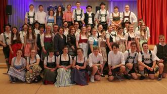 | Zur Auflockerung werden Volkstänze unter Anleitung von Tanzlehrer Bernhard Danner zusammen getanzt. | |