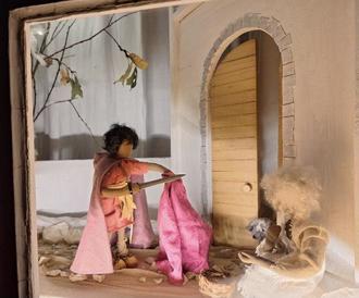 Zum Foto: „Sankt Martin teilt seinen Mantel für den Bettler.“ Es ist schon zur Tradition geworden, dass wir zu St. Martin und in der Vorweihnachtszeit die abends beleuchteten Fenster im Heimathaus gestalten. Das meinen Doris Ebenhoch (KiTa) und Carmen Volkert (KiGa) die mit ihren künstlerisch selbst gestalteten biblischen Erzählfiguren uns alle jedes Jahr erfreuen! Für ihren Einsatz ganz herzlichen Dank! - Die Ausstellungsvitrine im Bauernstüble mit antiken Brillen, Kuriositäten und Raritäten von Oliver Kellner ist weiterhin zu besichtigen.