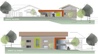Nachdem verschiedene Varianten zur Gebäudeansicht vorgelegt wurden, hat sich der Gemeinderat für die Variante 4 (Satteldach, siehe Abbildung) entschieden. Das erstellte Raumkonzept fand Zustimmung von Gemeinderat und KiGa-Team. Das Konzept soll nun weiterverfolgt werden. Zur Vorbereitung eines Bau- und Finanzierungsbeschlusses sollen die Fördermöglichkeiten ermittelt werden. Ein Bauantrag soll in diesem Jahr eingereicht werden.