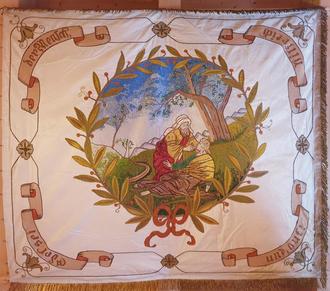 Front- und Rückseite der Fahne des Krankenunterstützungsvereins aus dem Jahr 1915. Die Fahne kann heute im Heimathaus Börwang bewundert werden.