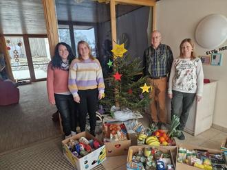 Ein Tannenbaum wurde mit bunten Sternen geschmückt. Auf jedem Stern stand ein Lebensmittel. Die Eltern konnten nun mit ihren Kindern Sterne „pflücken“ und die aufgeschriebenen Lebensmittel in einen Korb unter den Baum legen.