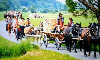 Historischer Salzzug von Immenstadt nach Weiler-Simmerberg. Nachgestellt aus Anlass eines Jubiläums im Jahr 2023.