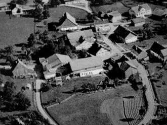 Börwang von oben im Jahr 1938: Links unten der Salzstadel nördlich vom Gasthof „Rössle“.