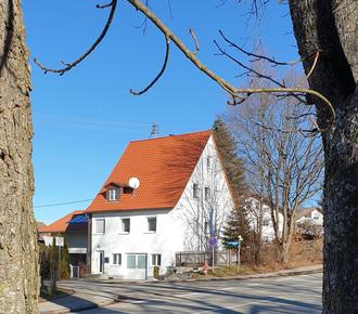 Der Salzstadel (längst abgebrochen) heute als privates Wohnhaus nördlich der Raiffeisen-Filiale.