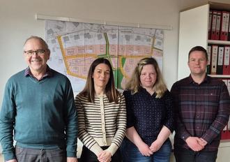 Im Bild v.l.n.r.: 1. Bgm. Josef Wölfle, Tamara Bock, Sabrina Burger, Timo Lederle (Bauamtsleiter)