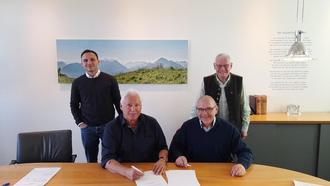 Der Kaufvertrag über das Baugrundstück zur Errichtung eines Lebensmittelmarktes mit darüber liegender Wohnbebauung zwischen der Gemeinde Haldenwang und der Fa. Heimatwerk GmbH i.Gr. mit Sitz in Woringen wurde abgeschlossen. Vorausgegangen waren intensive Verhandlungen und die Klärung offener Fragen u.a. zur Erschließung, Abstandsregelungen zur Staatsstraße oder der Löschwasserversorgung. Geschäftsführer Gerhard Breher und Bürgermeister Josef Wölfle freuen sich über den Abschluss des Vertrages. Damit ist ein wichtiger Meilenstein zur Umsetzung des Vorhabens erreicht.