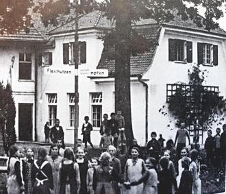 1937: Börwanger Schulkinder im Schulhof an der Friedenseiche (gepflanzt 1872).