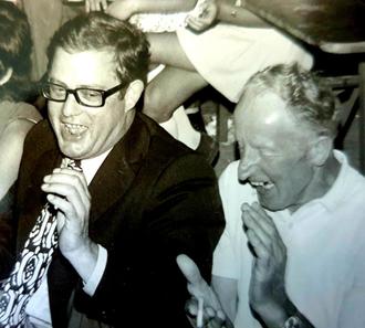 1972: 100 Jahre Freiwillige Feuerwehr Haldenwang. Als stets geselliger Mensch freute sich Max Fackler zusammen mit den langjährigen Gemeinderat Hermann Bareth beim Auftritt von Schlagerstar Bata Illic.