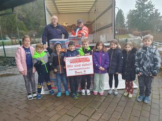 Schokolade, Zucker, Mehl, ein kleines Spielzeug und vieles mehr packten unsere Schulkinder in Weihnachtspaketen zusammen. Ein Johanniter Weihnachtstrucker holte die 19 Pakete in unserer Schule ab, um damit bedürftige Menschen zu unterstützen. Vielen Dank allen, die unserer Aktion unterstützten!