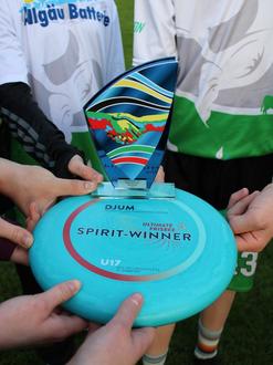 Neben dem rein sportlichen Preisen, wird beim Ultimate Frisbee auch stets das „Most Spirited Team“ geehrt. Die erste und oberste Regel beim Ultimate Frisbee ist der „Spirit of the Game“, also der Sportsgeist: jeder setzt sich ein, aber nie zu Lasten des Respekts vor dem Mit- und Gegenspieler. Deshalb regulieren die Spieler beim Ultimate das Spiel selbst, und es gibt keine externen Schiedsrichter. Um den Spirit zu stärken, bewerten sich die Teams nach den Spielen gegenseitig in den Kategorien Regelkenntnis, Körperkontakt, Fairplay, positive Einstellung und Kommunikation. Wir "MuH - Mir us Haldawang" konnten den Spirit-Preis gewinnen, was angesichts der hart umkämpften Spiele umso bedeutender wirkt!