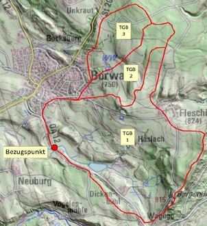 Das Ingenieurbüro A & B GmbH & Co. KG, Börwang wurde deshalb gebeten verschiedene Lösungsvarianten zu prüfen. Herr Bäumler stellte vier Varianten vor. Bei dreien davon geht es um die Schaffung eines relativ kleinen, aber für die Abdeckung des Teilgebietes 2 (s. Karte) ausreichenden Rückhalteraumes von ca. 200 m³, der im Bereich des Baugebietes „Beim Mühlenbauer“ realisiert werden könnte. Damit wären seiner Ansicht nach auch die Voraussetzungen für eine wasserrechtliche Genehmigung gegeben.