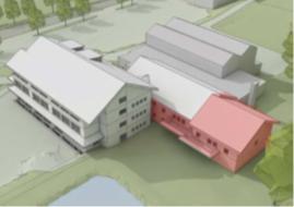 Dafür wird die Mittagsbetreuung auf mehrere Geschosse im nördlichen Gebäudetrakt erweitert. Im Untergeschoss entsteht unter anderem eine neue Mensa mit entsprechender Küche, die über einen Lichtgraben natürlich belichtet und belüftet wird. Zusätzlich sind Anpassungen im bestehenden Schulgebäude vorgesehen: Die bisherige Küche und Mensa im Erdgeschoss werden künftig als Mehrzweckraum, für Schulsozialarbeit sowie für Besprechungen genutzt. Ebenfalls wird dort ein neues Klassenzimmer geschaffen. Im Dachgeschoss entstehen Räume für Musikunterricht und differenziertes Lernen. Auch die Außenbereiche für die Betreuung sollen erweitert werden.