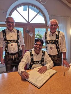 Zum 31.08.2025 verlässt uns Pater Prakash nach segensreicher Zeit in unserer Gemeinde. Als Zeichen der Dankbarkeit und Wertschätzung durfte er sich in das Goldene Buch der Gemeinde eintragen.