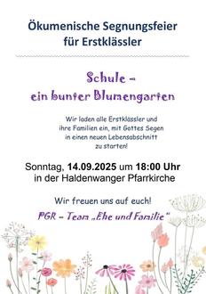 | 18:00 Uhr | Ökumenische Segnungsfeier für Erstklässler |