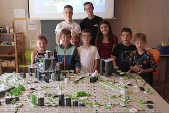 Die „Weltrekordknacker“ Jonas und Finn begeisterten die Kinder mit ihren GraviTrax-Baukünsten.