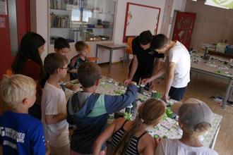 Nun stecken wir mitten in der Ferienbetreuung. Auch hier ist Riesenspaß angesagt. Die gesamten Ferien stehen unter dem Motto „Farben“. Unglaublich viele Möglichkeiten boten und bieten sich hier an.