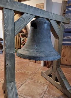 Altbürgermeister Toni Klotz rettet die 700 Jahre alte eiserne Glocke aus der Haldenwanger Pfarrkirche für unser Heimathaus!- Kommen Sie und lesen die ganze Geschichte! - Den neuen „Glockenstuhl“ fertigte Hermann Wasserrab.