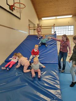 Im Eltern-Kind Turnen möchten wir eine möglichst frühe Bewegungsförderung für die Kinder von 1 - 3 Jahre erzielen. Durch den Aufbau von großen Spiellandschaften mit Turngeräten wird dieser Einstieg sehr kindgerecht und spielerisch gestaltet und die Motorik des Kindes und Koordination von Bewegungsabläufen trainiert.