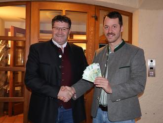 Wasti Osenstätter (rechts) übergab 500 Euro als Zuspende zum gemeindlichen Sozialfonds an Bürgermeister Toni Wimmer.