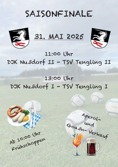 | Termine: | 31.05.2025 DJK Nußdorf - TSV Tengling 13:00 Uhr |