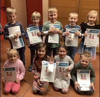 Am Montag, den 15.05.2023, durften die Vorschulkinder des Nußdorfer Kindergartens am Ersthelferkurs "Trau Dich" teilnehmen. Es wurden verschiedene Situationen besprochen, was man bei einem Notfall zu tun hat. Die Kinder lernten das richtige Anlegen eines Verbandes und was man beachten muss, wenn man ein Pflaster auf eine Wunde klebt. Außerdem übten die Kinder die stabile Seitenlage. Am Ende erhielt jedes Kind eine Teilnehmerurkunde und ein Erstehelferset.